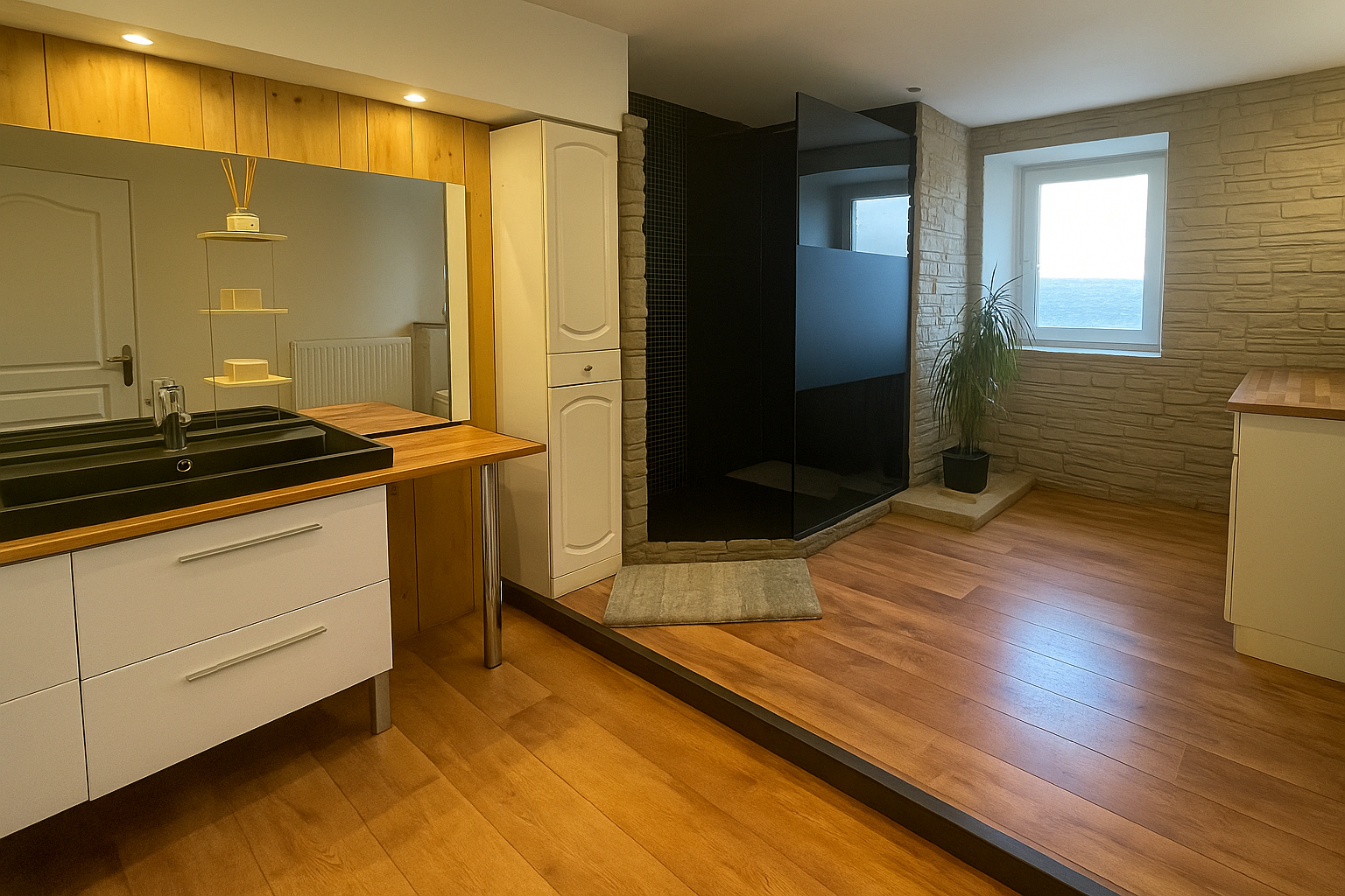 L’intérieur du gîte combine confort et fonctionnalité, avec des pièces spacieuses et un aménagement pensé pour faciliter votre séjour.