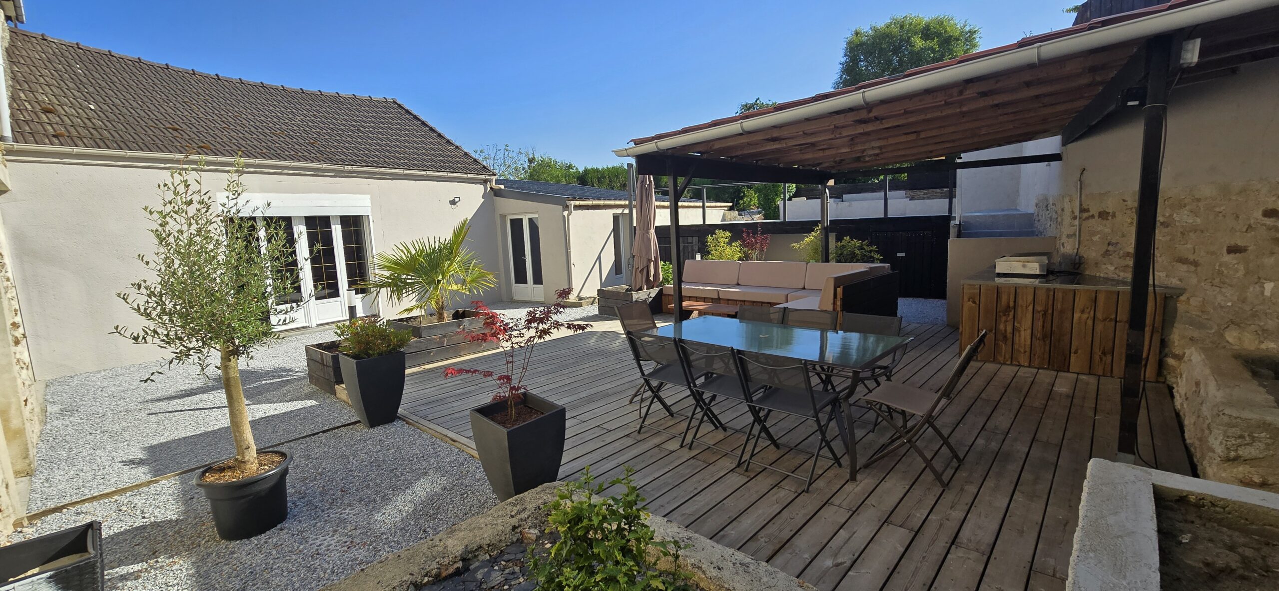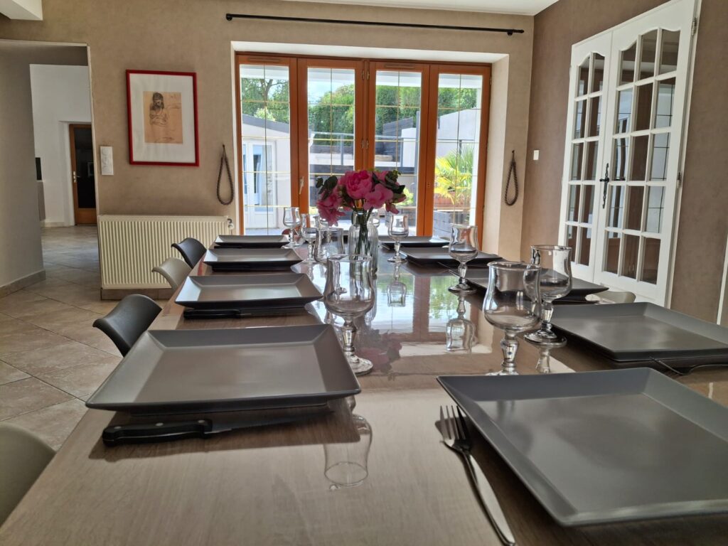 L’extérieur propose des espaces ouverts et sécurisés : cour privative, jardin clos et piscine pour se détendre et partager des repas ou des moments conviviaux.
