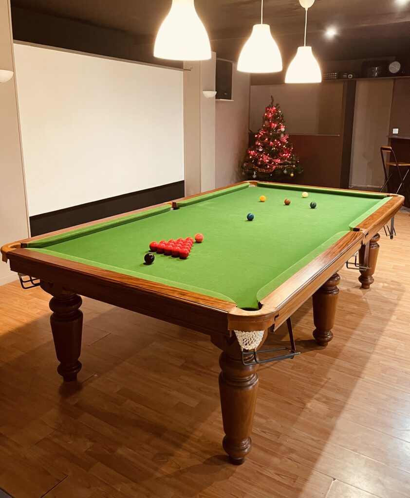 • Espace de loisirs de 80 m² avec billard, fléchettes, table de ping-pong, jeux, bar et tables — un lieu idéal pour se retrouver et profiter d’un moment convivial à l’abri.